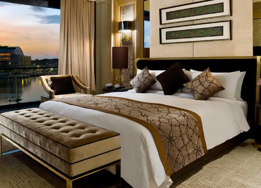 Panoramic floor-to-ceiling windows overlooking Marina Bay. Perfect for business travelers and luxury seekers.