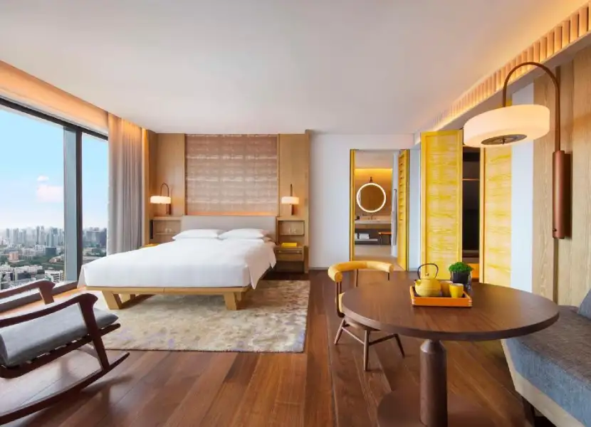 An exclusive suite offering expansive living areas, private dining, and breathtaking skyline views.